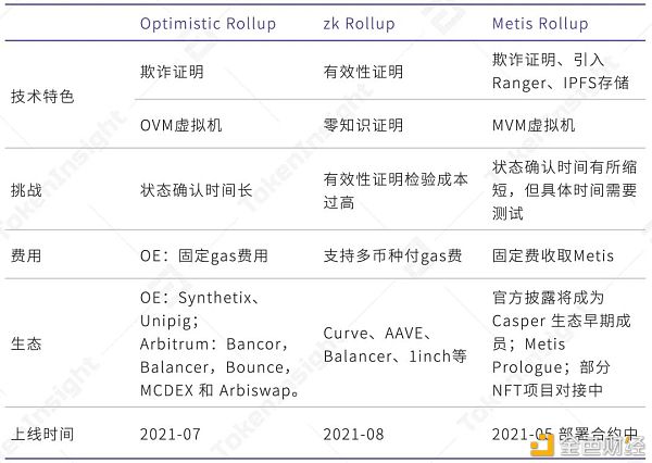 三种 Rollup 对比,来源:Metis, TokenInsight