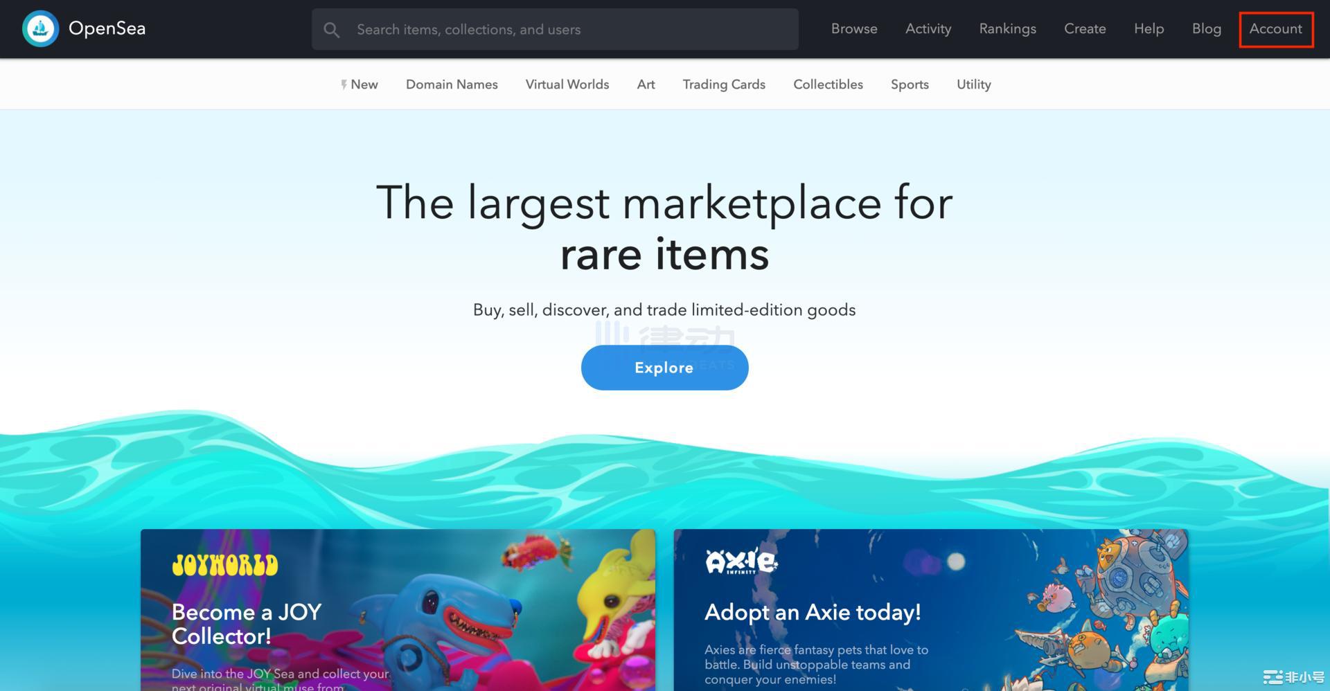 1打开opensea网站,点击右上角的“account”