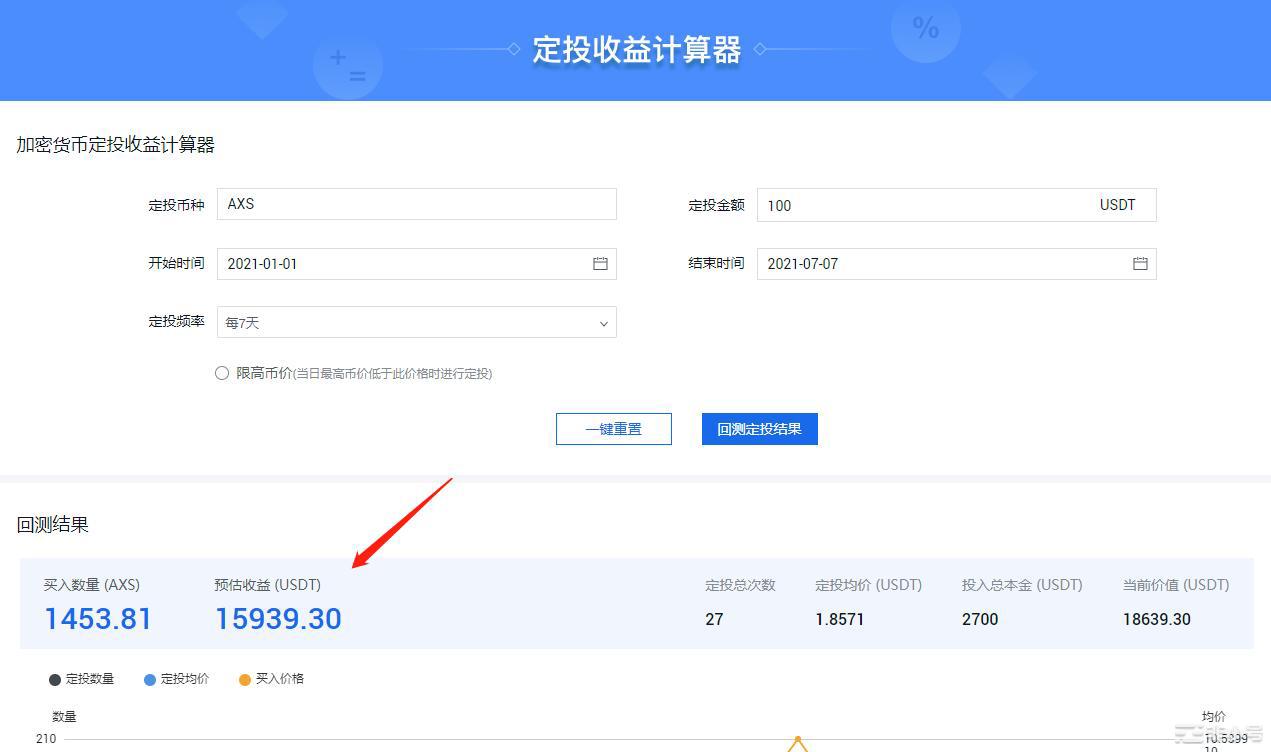 如果从今年开始定投AXS,收益竟然高达9.6万元? 非小号官方 2021年07月08日 08:38 微信扫一扫分享到朋友或朋友圈 NFT游戏AXS大火,币价也经历了一轮暴涨,那假设从今年第一天开始,每周定投100U,定投半年后收益多少?我们使用非小号定投收益计算器帮你算出来了,收益大概15939.30USDT,收益率为690%!你的定投币种收益率是多少?来测测吧:https://www.feixiaohao.cc/data/calc.html