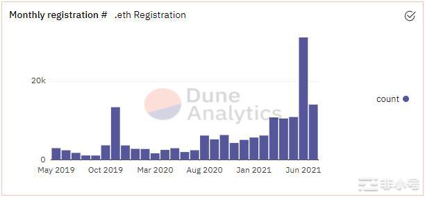 (数据来源:https://duneanalytics.com/makoto/ens )
