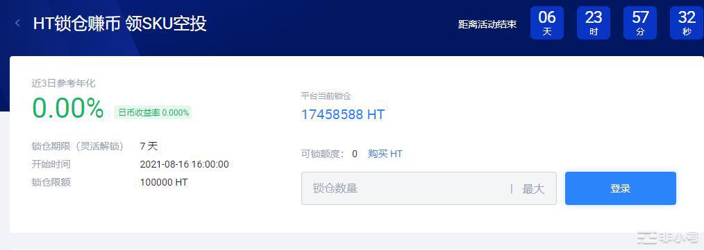 Huobi Global上线Primepool空投活动(SKU) 非小号官方 2021年08月16日 08:03 微信扫一扫分享到朋友或朋友圈 Huobi Global 即将开启Primepool空投活动(SKU)。灵活锁定HT、CLV参与Primepool空投,瓜分1680万枚SKU 活动参与方式: WEB端:点击首页轮播图【灵活锁定HT、CLV空投SKU】进入活动页面 APP端:登录Huobi APP,点击首页轮播图【灵活锁定HT、CLV空投SKU】进入活动页面