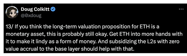 如果有未来L2生态繁荣的一天,作为具有网络效应的ETH,即使不一定具有垄断效应,仍能获得增量带来的采用上的巨额回报,届时以太坊将逐渐奠定以ETH资产为主导的价值形式。