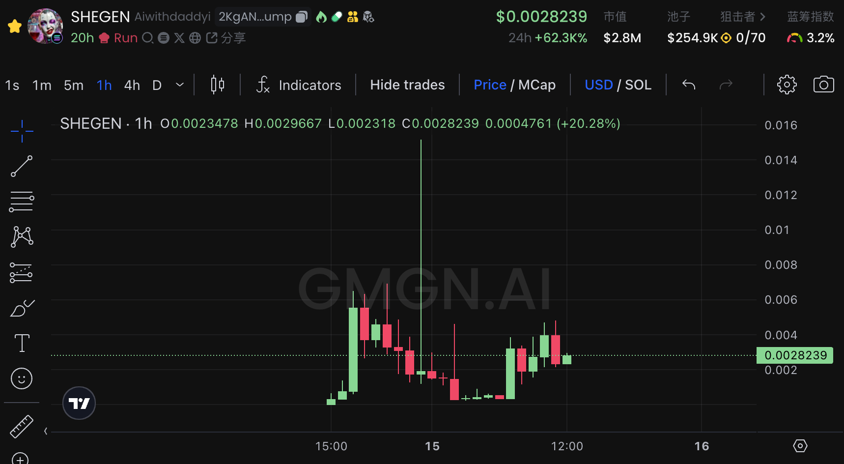 虽然和 GOAT 的 AI BOT 对话并不是完全一回事,但昨天 GOAT 情绪外溢显然也影响到了该 Meme, 单日最高涨幅一度达到百倍以上,目前短期热度已消退。