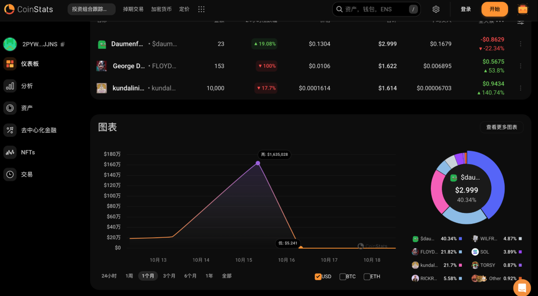 通过 Coinstats 分析该钱包地址 portfolio,这类多半是临时钱包,没有其他重仓的资产