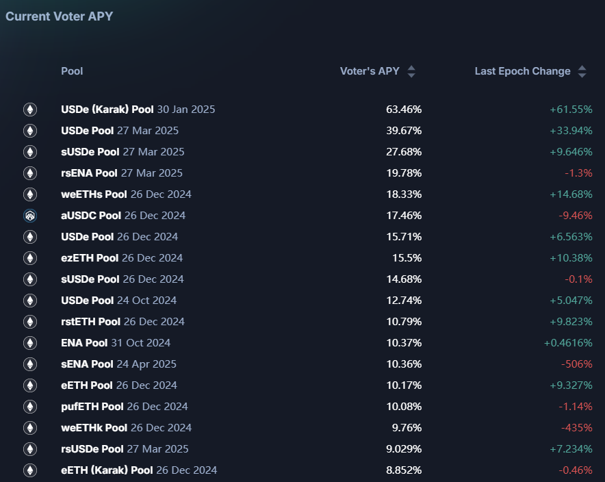 Pendle 提供了做多与做空收益率的工具,用户基于对收益率的预测和判断选择相应的投资策略,因此收益率是参与该协议的重要指标,Pendle 也提供了多种 APY 来反映当前的市场情况: