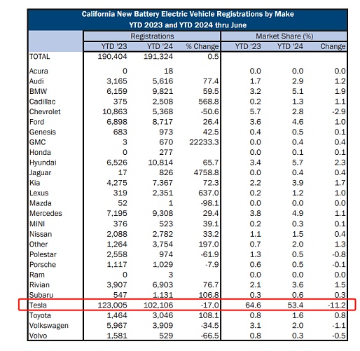 值得注意的是,尽管在与马斯克结盟后,特朗普态度有所软化,称会支持电动车,但在此之前,特朗普并非电动车热爱者。受此影响,热衷环保的自由派已开始抵制特斯拉,根据加州新车经销商协会数据,在自由党集中且是美国最大电动车市场的加州,特斯拉第二季度销量下跌17%。