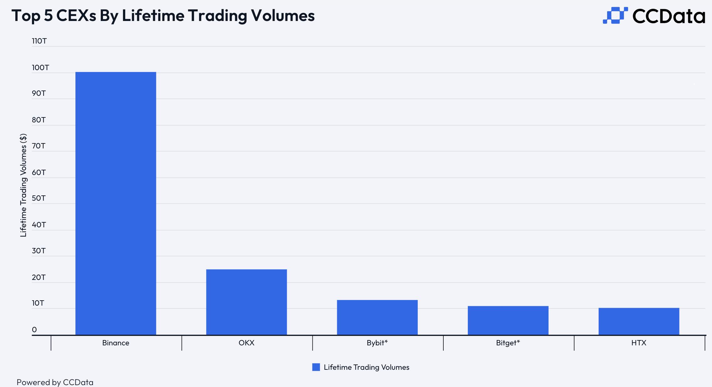 按历史交易量排名的 Top5 CEX 来源:CCData