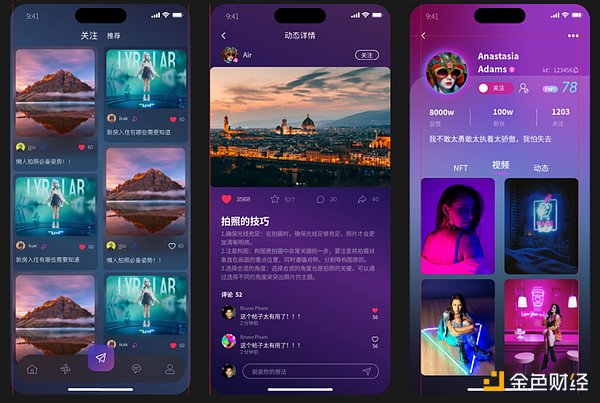 下图是否激发了你的想象力?瀑布流页面好像有点过时了,注意个人主页的NFT展示区域,以及左侧的视频代币板块。注:下图来自某Web3社交产品。