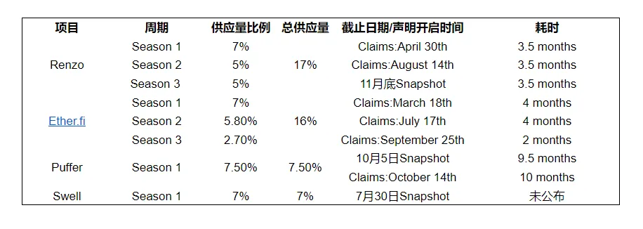 期望长期参与:相对于一轮游的其他项目,能持续参与并且盈利的项目才是当今市场波动下的最优选择,赛季总时长10.5个月的renzo和年末冲数据10个月的Ether.fi都是非常好的选择。