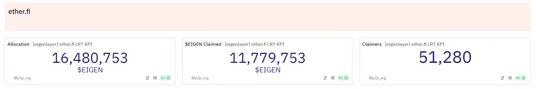 “在2023年8月15日至10月8日期间,ezETH通过复押产生了769.01 ETH(593,727.31 EIGEN)的奖励。