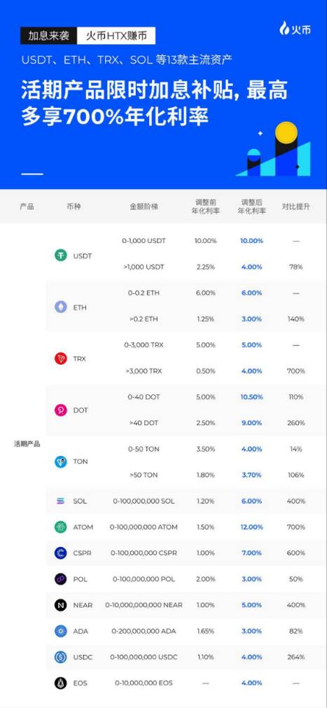 火币赚币活期产品再升级:13款主流资产获加息补贴,提升收益机会
