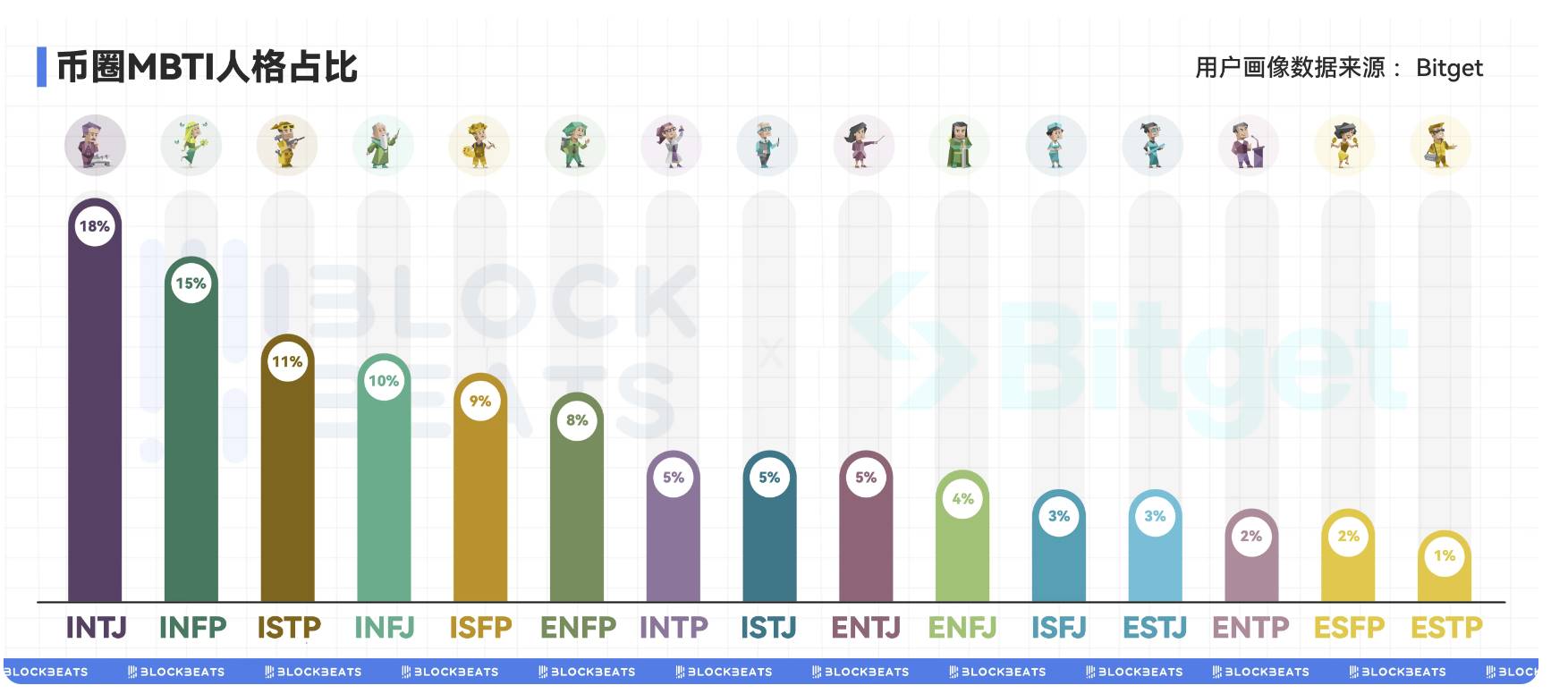 在投资收益率方面:今年 46.67% 的 INTJ 收益率在 0-10% 之间,是稳健派的代表;40% 的收益为负,可能是技术研究太深入,忘了市场还有波动这回事;13.33% 的收益在 30-50% 之间,为 INTJ 的研究型人格扳回了一些交易胜率话语权。INTJ 的投资方式可以用一句话概括:「在别人还没发现宝藏的时候,我已经在挖了。」他们偏爱左侧交易,在市场还没关注时就提前布局,因此也快人一步喜欢玩 Bitget 盘前交易和 launchpad。当大家都在讨论某个币的时候,他们可能已经开始研究下一个了。