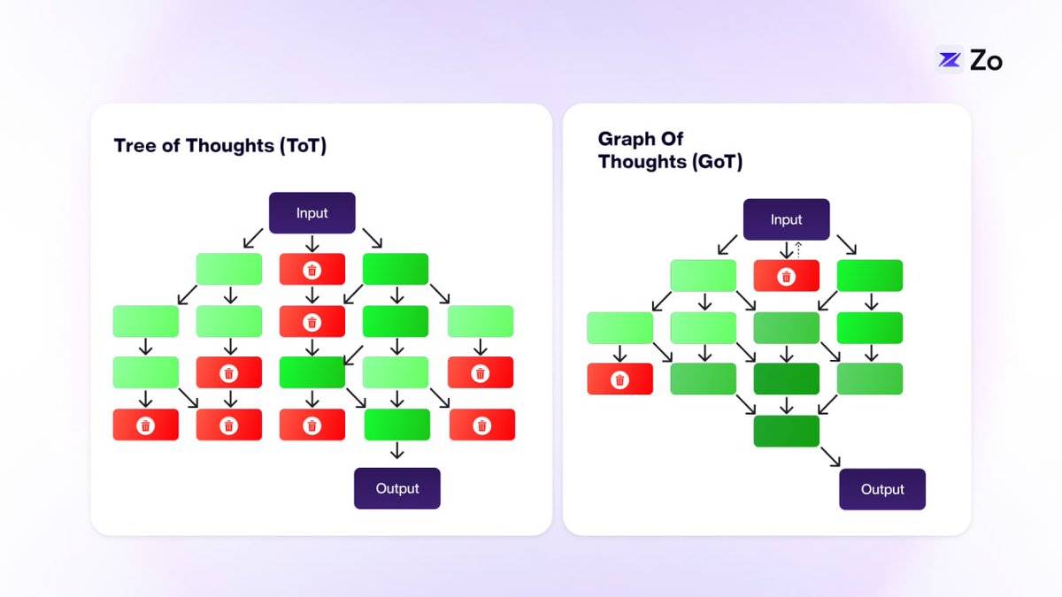 Graph-of-Thought (GoT) 进一步扩展了这一概念,将经典的数据结构与 LLMs 结合,允许任何“思维”在图结构中与其他思维相连。这个互联的思维网络更接近人类的认知方式。