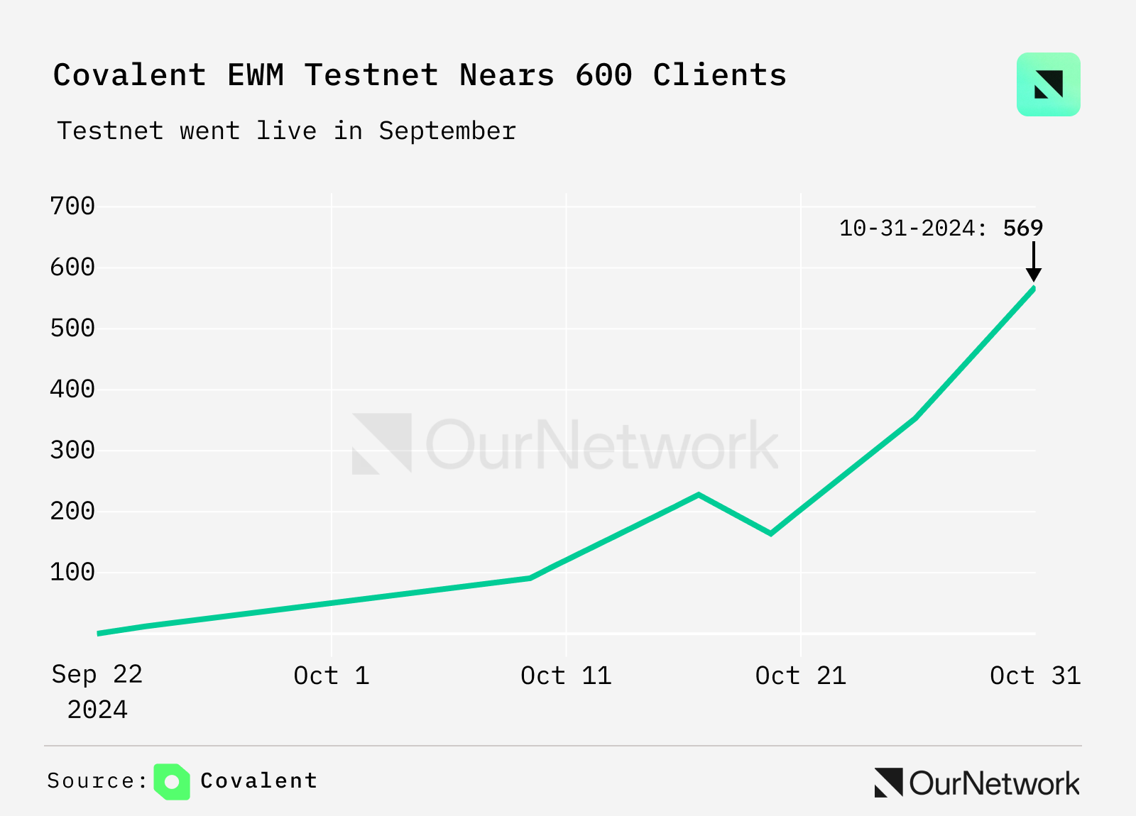 Covalent 的以太坊时光机 (EWM) 是一个旨在解决以太坊数据可用性问题的解决方案,计划在本月从测试网转向主网,目前拥有 569 个轻客户端。这些轻客户端是可以在普通硬件上运行的小型节点,在 10 月已经完成了 380 万次验证。