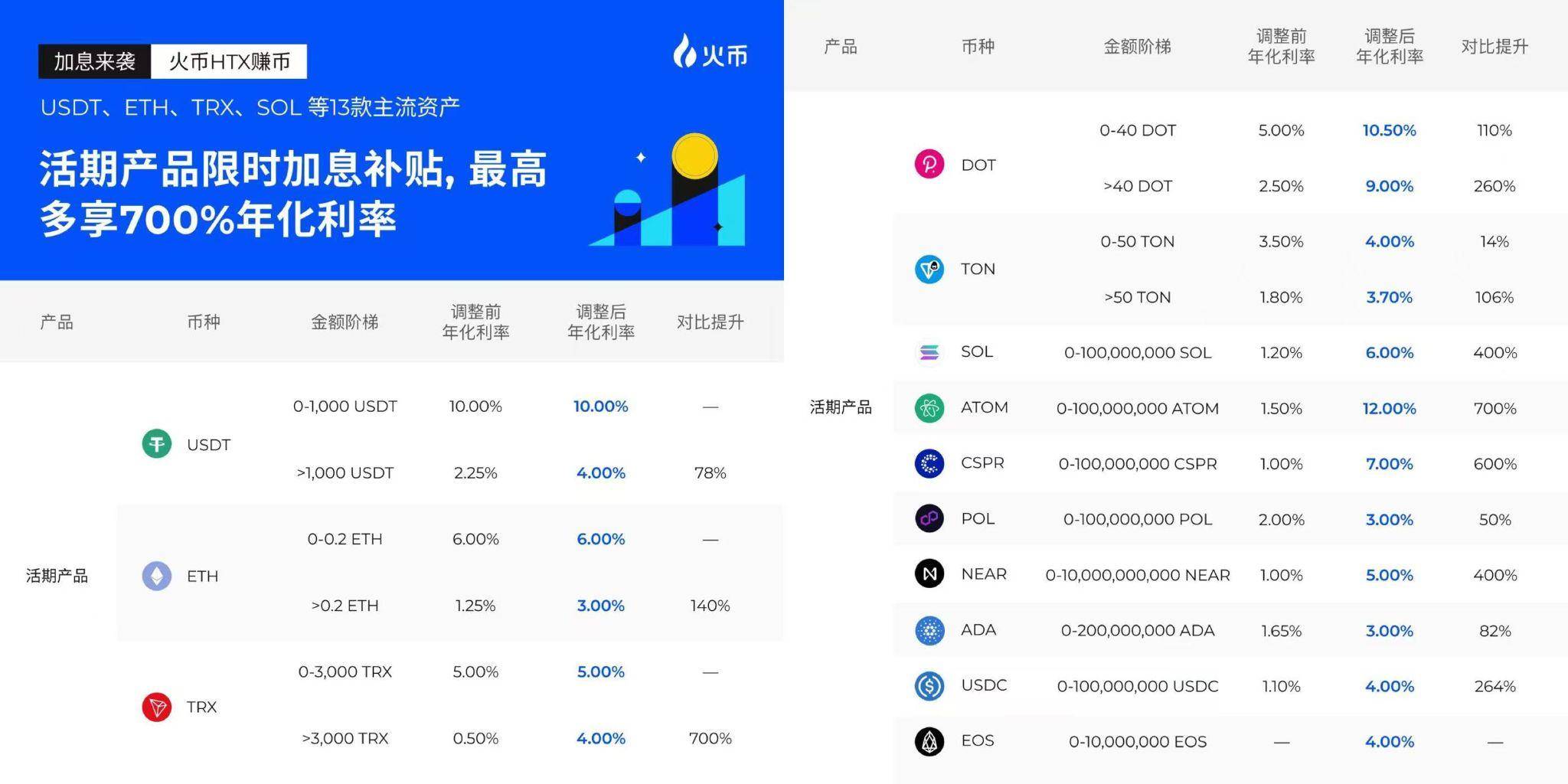 10月,火币HTX在产品功能与安全保护方面也取得了显著进展。APP端进行了大规模优化,启动加载速度提升36%,网络加载失败率降低40%,为用户提供了更为流畅的使用体验。同时,APP还推出了业界首发的无缝切换账号功能,提升用户操作便捷性。为回馈用户支持,火币HTX还对“活期产品”进行了全面升级,对多达13款主流资产提供限时加息补贴,最高多享年化利率达到700%,为用户带来更多收益。