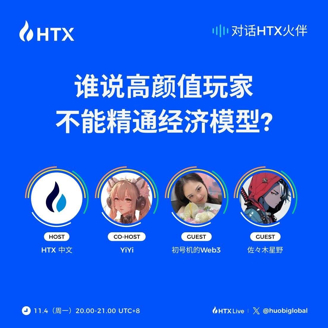 近日,火币HTX重磅新栏目“#对话HTX火伴”第二期开播。本期直播以“谁说高颜值玩家不能精通经济模型?以及关于链游GameFi你不能不知道的那些事儿!”为主题,邀请了初号机的Web3(@ScarlettWeb3)与佐々木星野(@hoshino_sasaki)两位火伴,深度探讨了GameFi的未来趋势和投资视角。两位嘉宾分享了自己的Web3心路历程,并就当前市场挑战和链游潜力展开讨论,为加密社区用户提供了宝贵的见解。