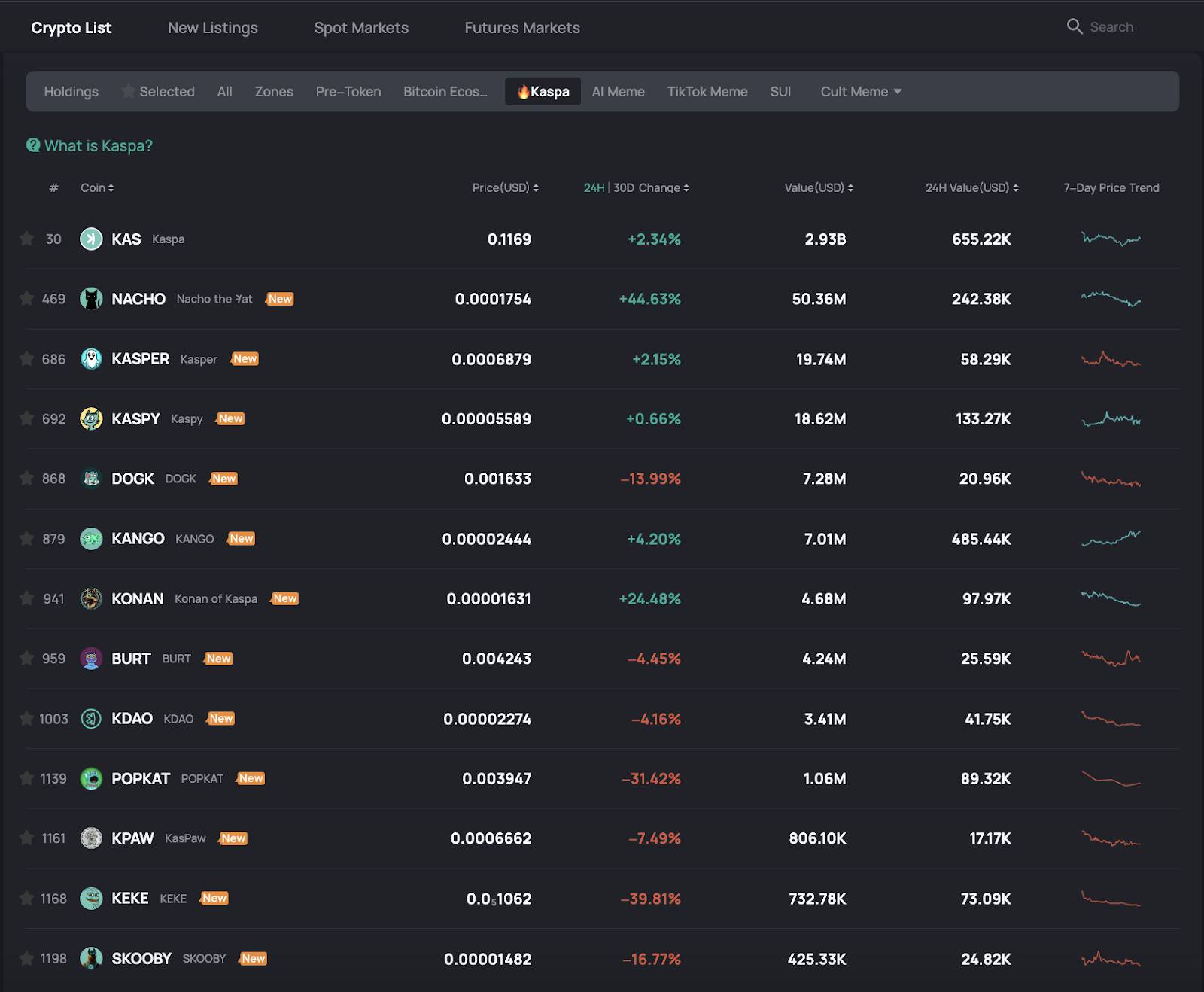 Kaspa 网络的新 KRC20 协议展现了惊人的采用率。自推出以来,日交易量从不到 2 万笔迅速飙升至超过 9 万笔,而每日交易总量也从 15 万笔以下激增至超过 800 万笔,显示出 KRC20 在 Kaspa 生态系统扩展中发挥了关键作用。CoinEx 迅速采用此协议,并上线了 12 种 KRC20 代币,进一步巩固了支持新兴加密创新的承诺。更多详细分析请参阅 CoinEx 最新文章《KRC20:引领 Kaspa 生态系发展的创新代币协议》。