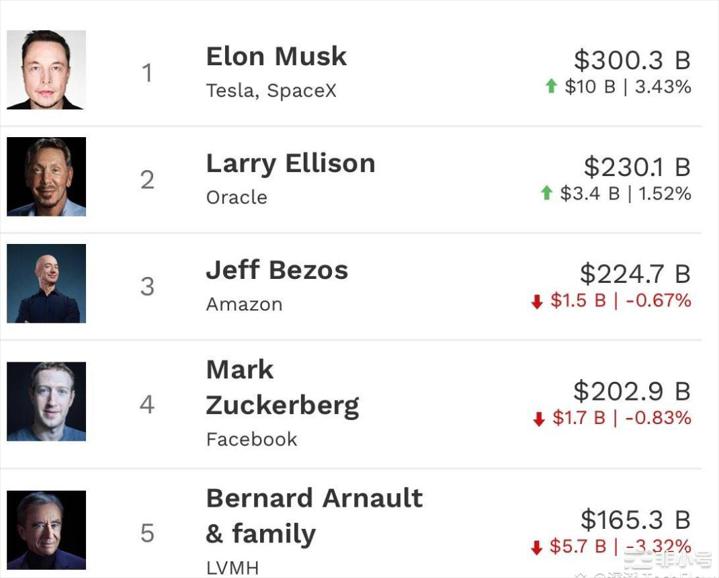 埃隆·马斯克(Elon Musk)净资产达到 3003 亿美元的增长,可以通过多个渠道进行验证。这类信息通常由财经媒体或财经数据跟踪网站(如 Bloomberg、Forbes 等)提供更新,特别是在股市表现显著影响个人财富的背景下。