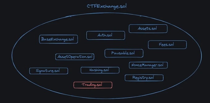 Exchange 智能合约实际上有一个更具体的名称,即 CTFExchange.sol。它不是很大,只有大约 100 行代码,但它确实具有大量依赖项。