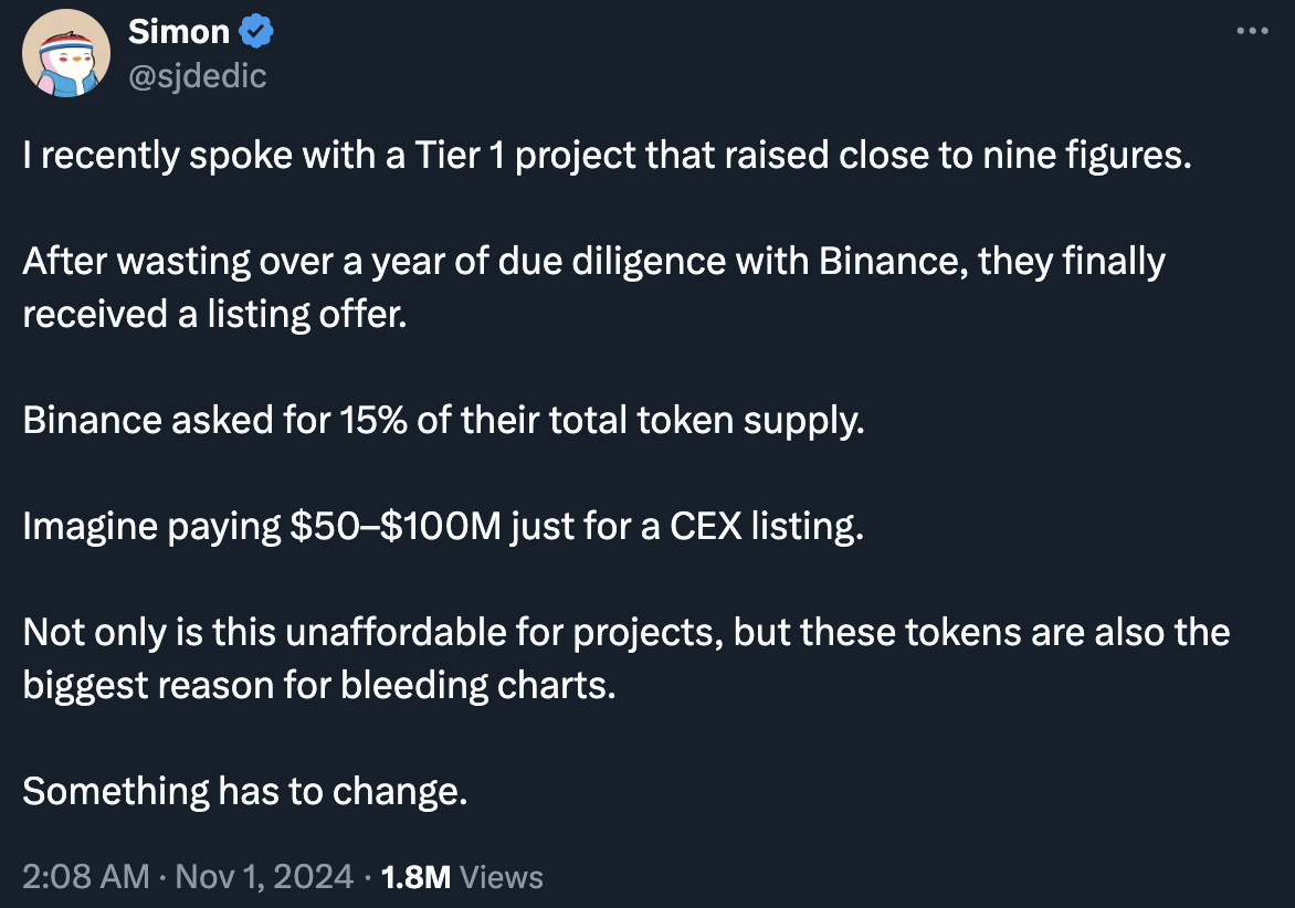 上币成本推高:大型交易所开出的上币费用动辄数十万美元