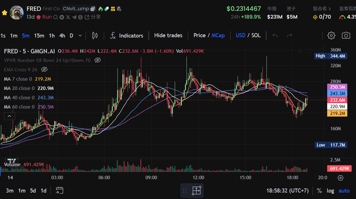 $FRED 与松鼠 $PNUT 同样属于“安乐死”赛道,是一只被安乐死的浣熊,最近 $PNUT 不断拉盘后,$FRED 也持续上涨,最高触及 3.4 亿市值左右。