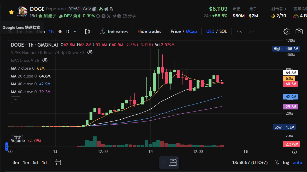 依旧是近日爆火的马斯克 「D.O.G.E」概念,但是在以太主网的同名币式微之际,Solana 的 $DOGE 还在持续上涨,当前市值 6000 万美元。