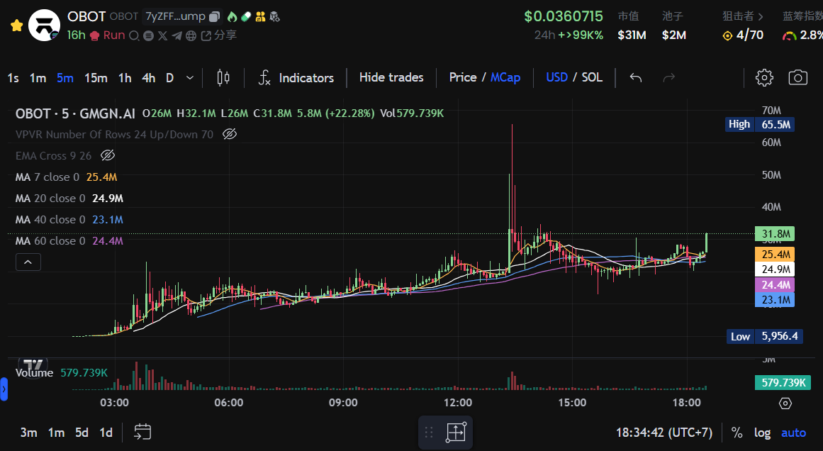 O.XYZ 是 IO.NET 创始人 Ahmad Shadid(@shadid_io) 发行的 AI 项目,白皮书中称其是一个正在打造全球首个由社区治理的去中心化超级 AI 项目,$OBOT 是在 pump 上发行 创始人亲自喊单的项目代币,于今日凌晨发射,经过 Ahmad Shadid 的推文不断狂奶现在涨势不停,当前市值突破 3000 万美元。