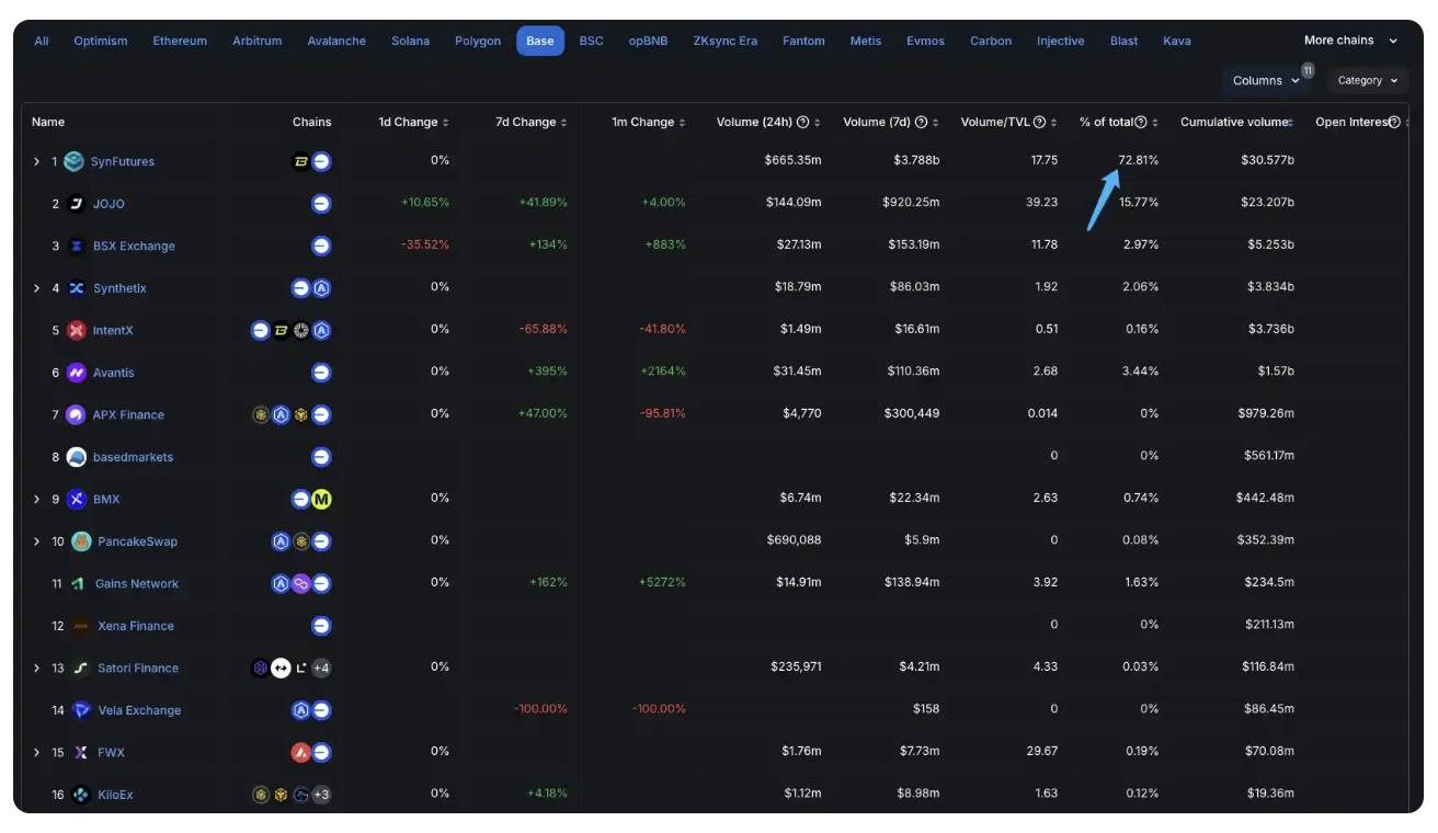 让我们先看看 SynFutures 在 Base 衍生品赛道的数据表现: