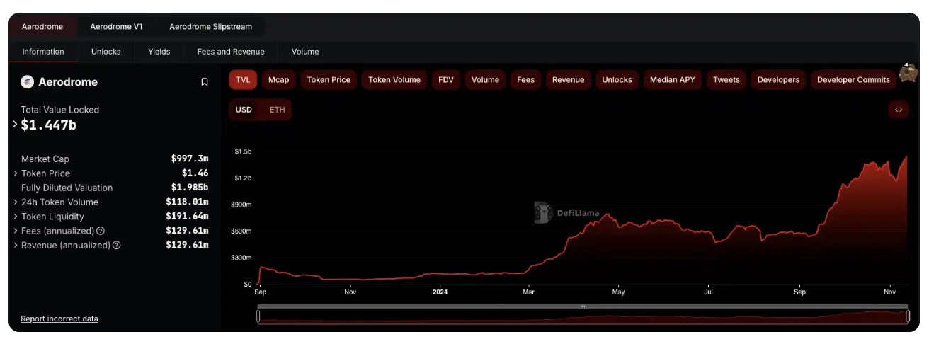 而当这一燎原之火起来时,对于现在的 SynFutures 而言,就如提供了一个巨大的泵,对其 TVL 和交易量的快速增长都非常有利,离衍生品赛道的龙头位置也将更进一步。让永续合约市场的主导权回到链上,回到社区,这是一个至少 10 亿美元的市场。仅以 Base 网络为例,Aerodrome 目前 TVL 为 14 亿美金,哪怕只有 1/10 的资金选择拥有自己的衍生品市场,那也是接近 1.5 亿美金的 TVL。而这还仅仅只是 Base 一个网络上一个协议的 TVL。而纵观整个市场,能做到这一件事的,目前唯有 SynFutures 这一家,其针对专门合约交易打造的 oAMM,将是这一趋势的最大受益者。