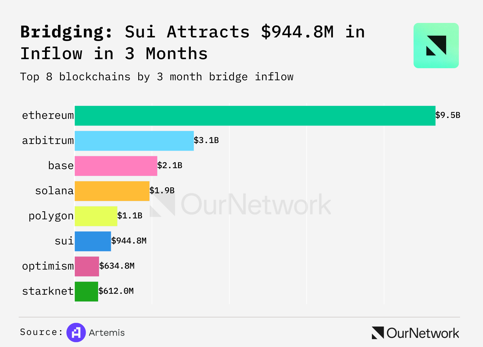 3 个月跨链资金接近 10 亿美元,Sui 成为多链焦点