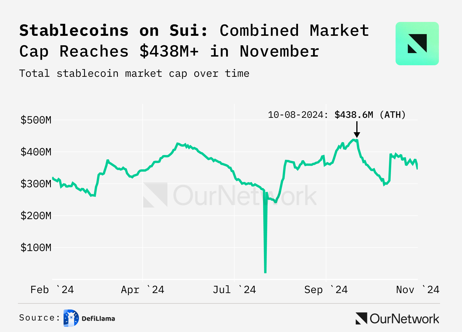 USDC 上线推动 Sui 链上稳定币市值突破 4.4 亿美元;目前市值为 3.45 亿美元