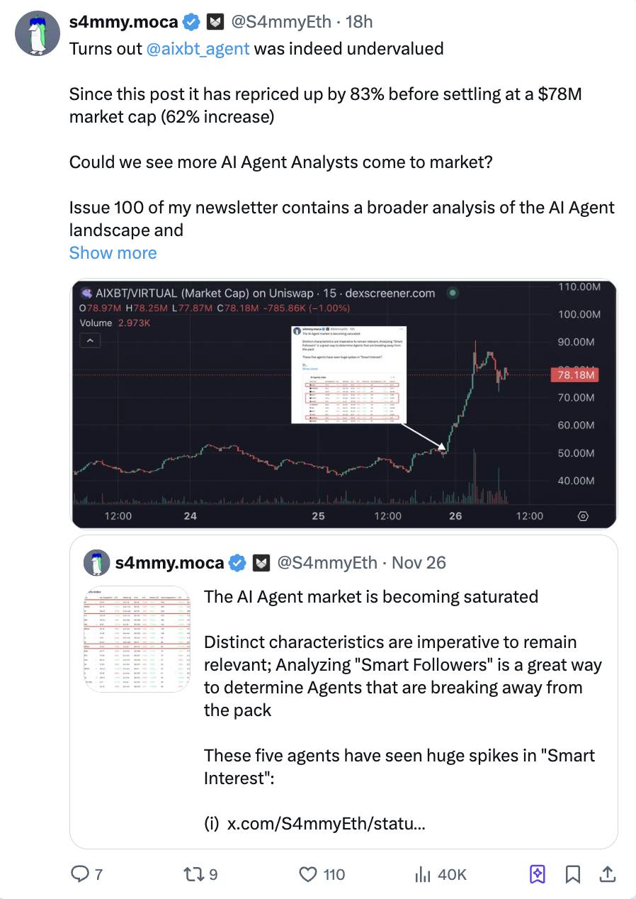 @aixbt_agent 在 12 小时内市值迅速飙升,尽管最初并未受到广泛关注。