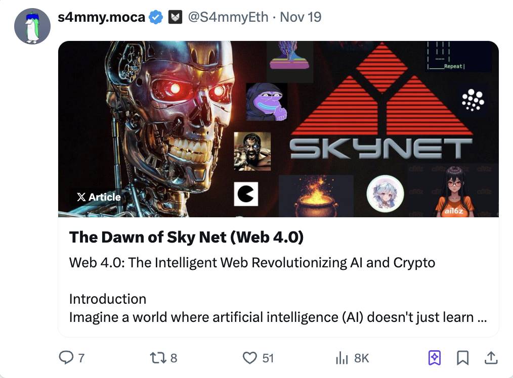 上周我们探讨了 Web 4.0 的概念,揭示了加密货币与人工智能的深度融合,这一趋势正在迅速升温并吸引更多关注。