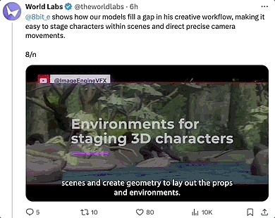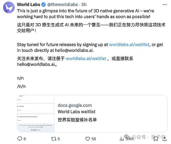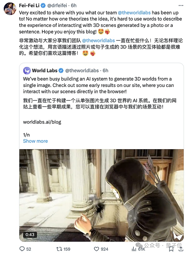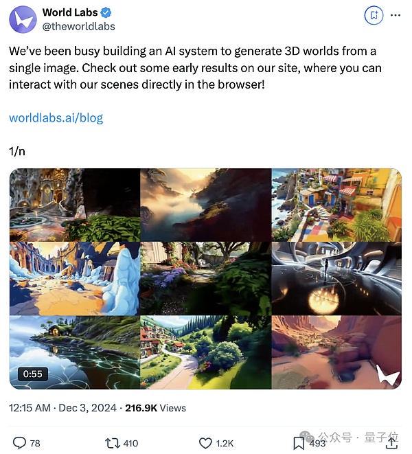 官方博文表示,今天,World labs迈出了通往空间智能的第一步: