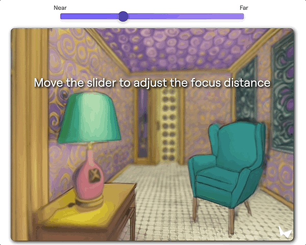 这些场景在浏览器中实时渲染,配备了可控的摄像机效果和可调节的模拟景深(DoF)。