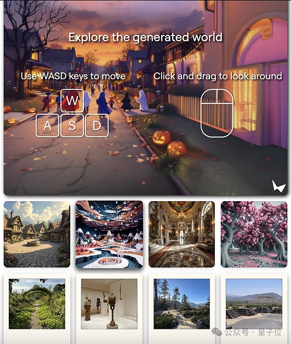 而且是能够互动的3D世界——用户可以通过W/A/S/D键来控制上下左右视角,或者用鼠标拖动画面来逛这个生成的世界。