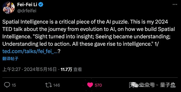 今年5月,李飞飞有一场公开的15分钟TED演讲。