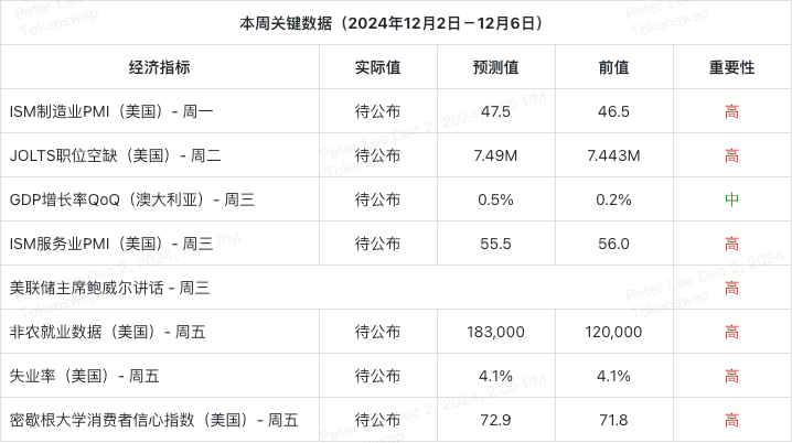 从 2024 年第 48 周经济日历看加密机会:联储降息是否在即?