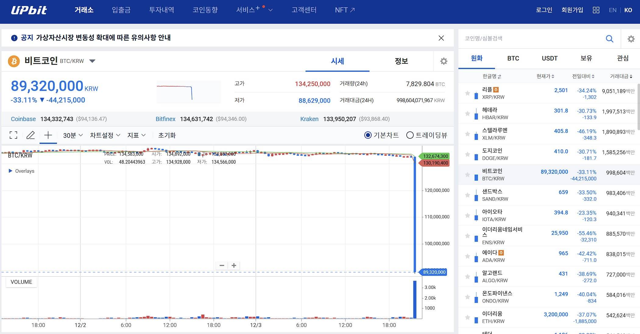 当然,受伤的一如既往有加密货币投资者,韩国最大的交易平台Upbit上比特币价格一度插针跌至6.5万美元。
