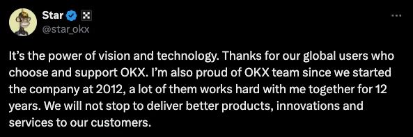 正如今天比特币突破10万美元之际,OKX CEO Star在X平台上表示这就是“愿景和科技的力量”。跨越传统与创新的融合之路势必将重塑全球资本市场的新秩序。