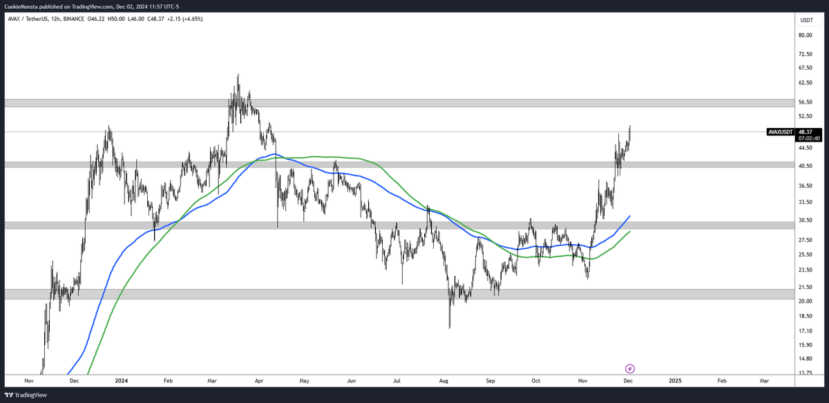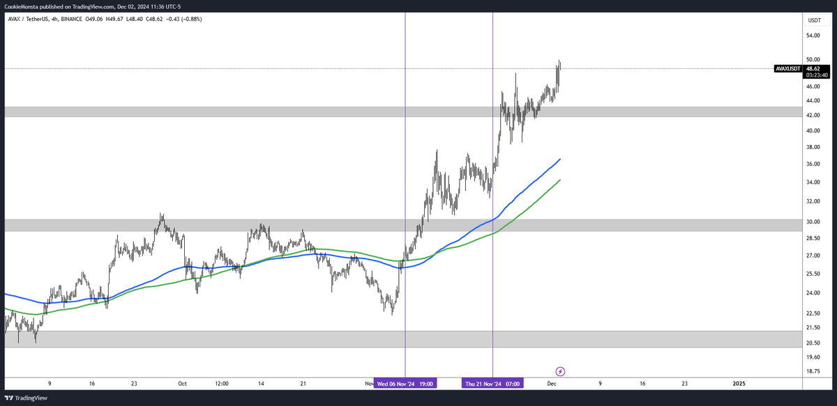 当 SOL 创下新高(并在我们未知的情况下局部见顶)时,AVAX 则形成了一个更高的低点,并随后上涨了 45%。