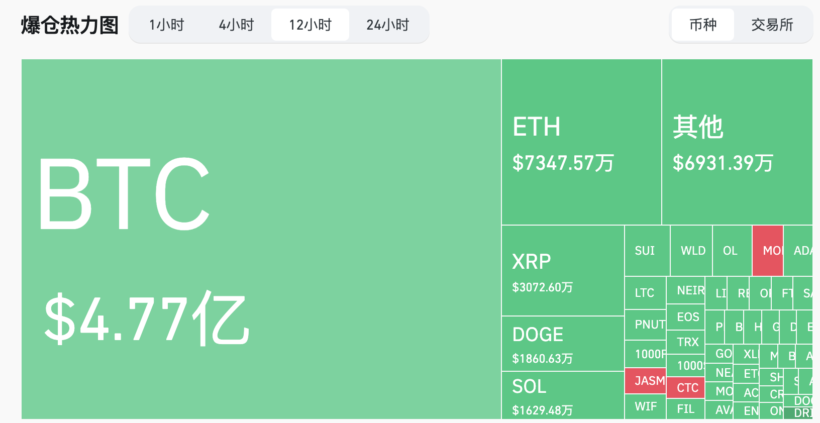 昨日,BTC 涨破 10 万美元后,晚间一路下跌。12 月 6 日凌晨 6 点 28 分,BTC/USDT 出现极端插针行情,BTC 短时跌至 90500 美元。12 小时爆仓 4.77 亿美元,主爆多单,达 4.1 亿美元。目前已逐步修复至 97860 美元,ETH 等其他山寨币在出现短时回调后也逐步修复。