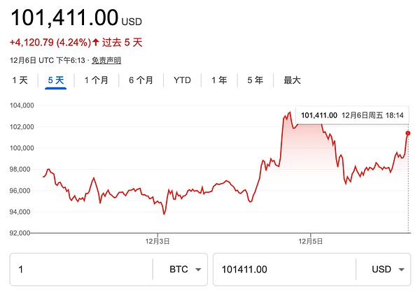 但是大饼势头太猛了,仅仅下跌一天后,价格又回到了10万美元上方。