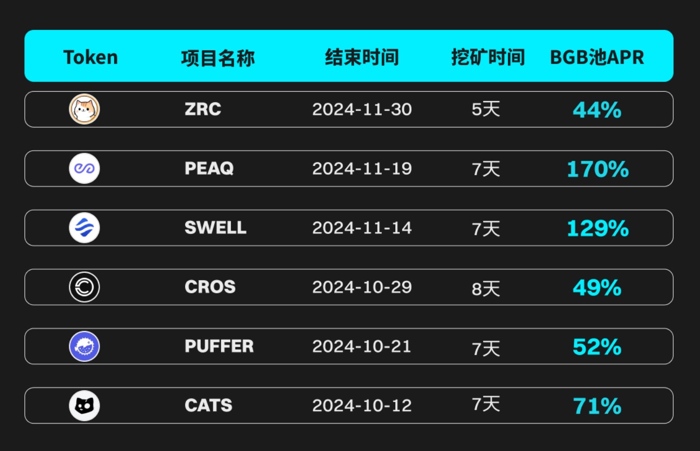 其中,最核心的莫过于 BGB 打新创造的财富收益,高频高收益成为最突出的亮点。数据显示,过去两月,Bitget Launchpool 平均每月上线三期项目,BGB 池 ARP 始终维持在 40% 以上,最高达到 170%,如下所示: