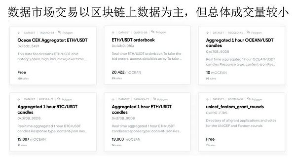 • 市场(Marketplaces):指由 Ocean Protocol 或第三方提供的一个开放、透明和公平的数据交易市场,它可以连接全球范围内的提供者和消费者,并提供多种类型和领域的数据通证。
