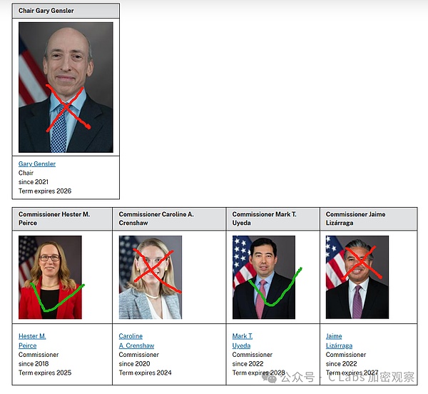 其中现任SEC主席Gary Gensler和他的小弟Jaime Lizarraga都是确定要在特朗普上台后辞职的。