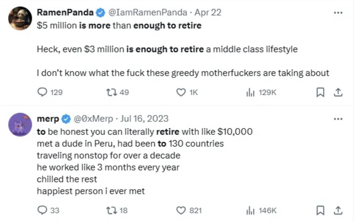 作为一个一直在考虑退休的人,我经常想:多少钱才算足够?虽然媒体经常吹嘘这需要一个天文数字,但我相信,对于我们许多人来说,100 万到 200 万美元可能才是最佳选择。原因如下,让我们首先从 TradFi 的角度来看待这个问题。