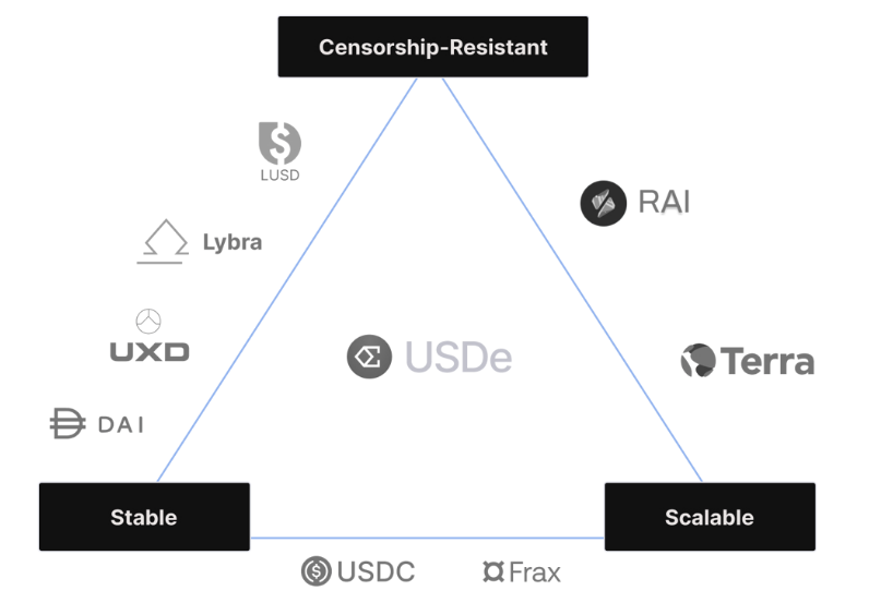 探索其他稳定币与 USDe 的对比 | 来源:Ethena Labs 的 Gitbook