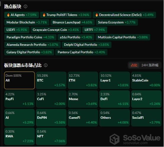 但时间来到今日,配合大概率降息的基本面,市场不出意外的开始拉涨,比特币短时突破 10600,再创新高,而以太坊也冲破 4000 美元,加密板块更是全线上涨,RWA 板块领涨 7.23%,沉寂已久的 NFT 板块也上升 7.06%。