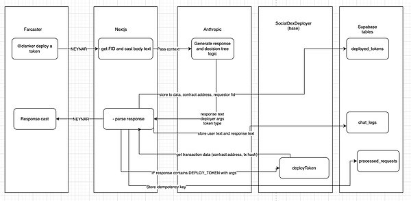 提交请求后,Clanker 通过其智能合约基础设施部署代币,并在 Base 上建立 Uniswap V3 流动性池,交易费用由用户和协议分摊。
